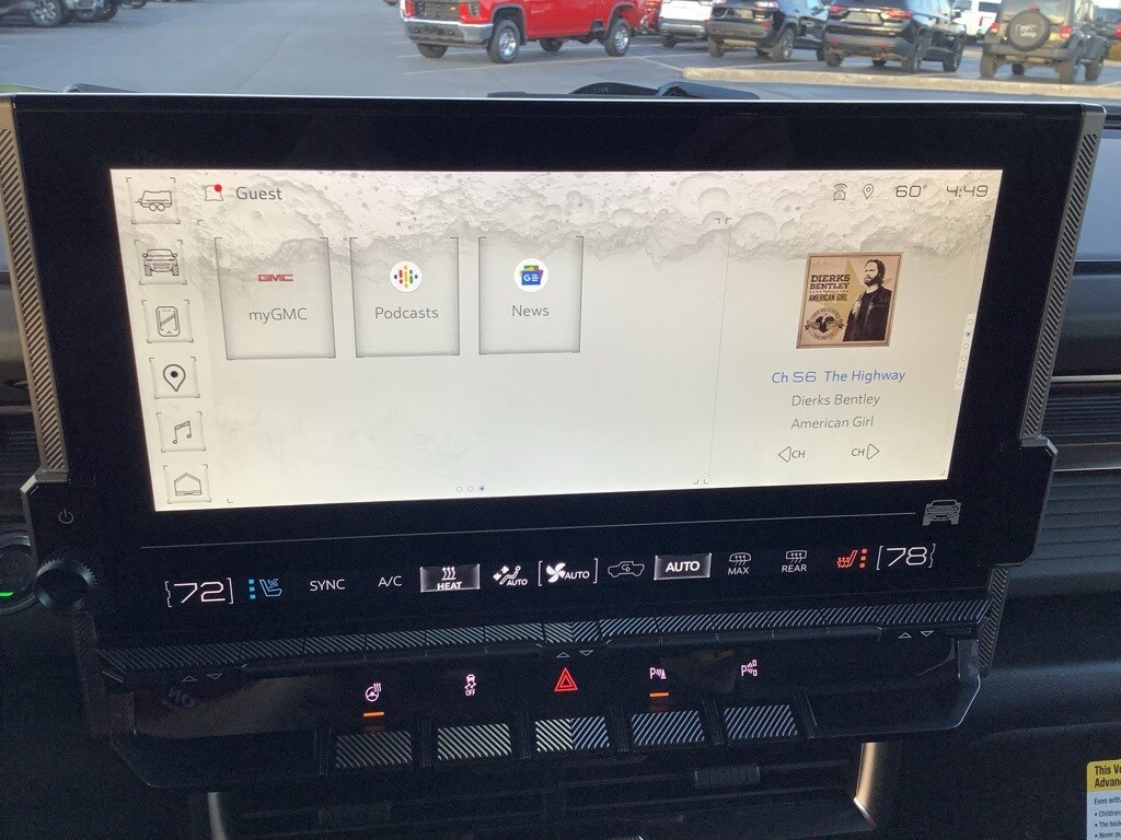 ENGINE, NONE (ELECTRIC MOTORS), WHEELS, 22 X 9.5 GLOSS BLACK PAINTED ALUMINUM, TIRES, LT305/55R22 GOODYEAR WRANGLER TERRITORY AT, TIRE, SPARE, LT305/55R22 35, AUDIO SYSTEM, 13.4 DIAGONAL PREMIUM GMC INFOTAINMENT SYSTEM WITH GOOGLE BUILT IN APPS SUCH AS NAVIGATION AND VOICE ASSISTANCE, 3 YEARS SIRIUSXM