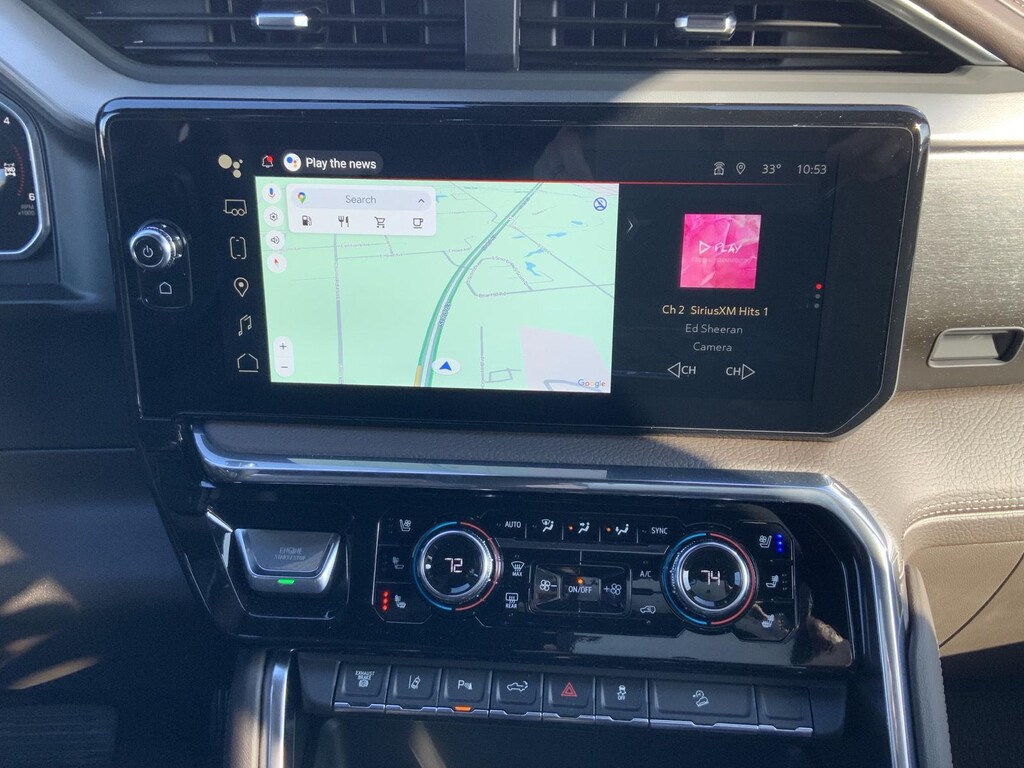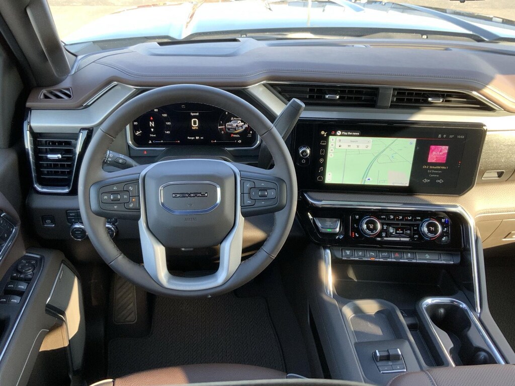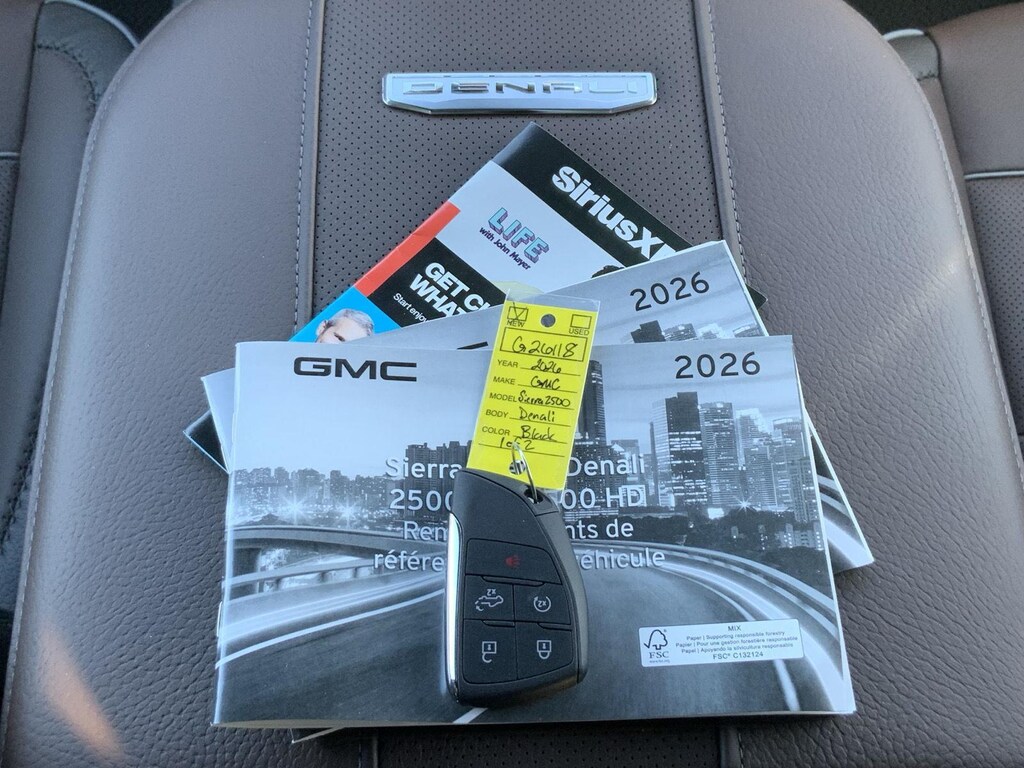 EMISSIONS, FEDERAL REQUIREMENTS, ENGINE, DURAMAX 6.6L TURBO-DIESEL V8, B20-DIESEL COMPATIBLE, TRANSMISSION, 10-SPEED AUTOMATIC, GVWR, 11,350 LBS. (5148 KG), REAR AXLE, 3.42 RATIO, WHEELS, 20" (50.8 CM) ULTRA-BRIGHT MACHINED WHEELS, TIRES, LT275/65R20 ALL-TERRAIN, BLACKWALL, ONYX BLACK, SEATS, FRONT BUCKET, ATMOSPHERE/BROWNSTONE, FORGE PERFORATED LEATHER SEAT TRIM, AUDIO SYSTEM, 13.4" DIAGONAL PREMIUM GMC INFOTAINMENT SYSTEM WITH GOOGLE BUILT IN APPS SUCH AS NAVIGATION AND VOICE ASSISTANCE, TECHNOLOGY PACKAGE, SNOW PLOW PREP/CAMPER PACKAGE, ENGINE BLOCK HEATER, ALTERNATOR, 220 AMP, GOOSENECK / 5TH WHEEL PREP PACKAGE -- HITCH PLATFORM TO ACCEPT GOOSENECK OR 5TH WHEEL HITCH., EXHAUST BRAKE, WINTER GRILLE COVER, LICENSE PLATE KIT, FRONT, INCANDESCENT LIGHTING, MULTICOLOR 15" DIAGONAL HEAD-UP DISPLAY, UNIVERSAL VEHICLE MODULE, REAR CAMERA MIRROR