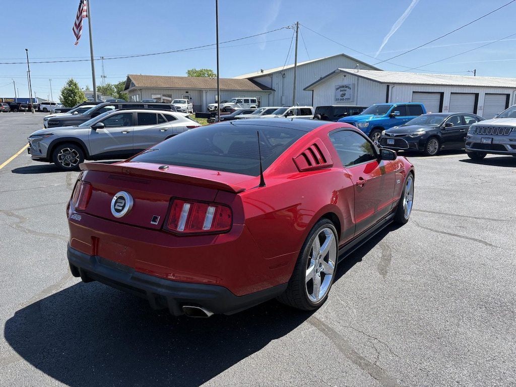 Imagine yourself cruising down a scenic country road just outside Shelbyville, the sun glinting off the Red Candy Metallic Tinted CC paint of this 2011 Ford Mustang GT Premium. The rumble of the 5L V-8 engine is music to your ears as you navigate the rolling hills, feeling the raw power and exhilaration that only a true sports car can deliver.